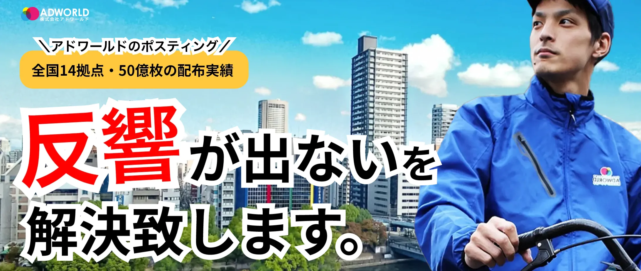 アドワールドは、全国対応のポスティング・チラシ配布サービスで、年間5億枚以上の配布実績を持つ業者です。
