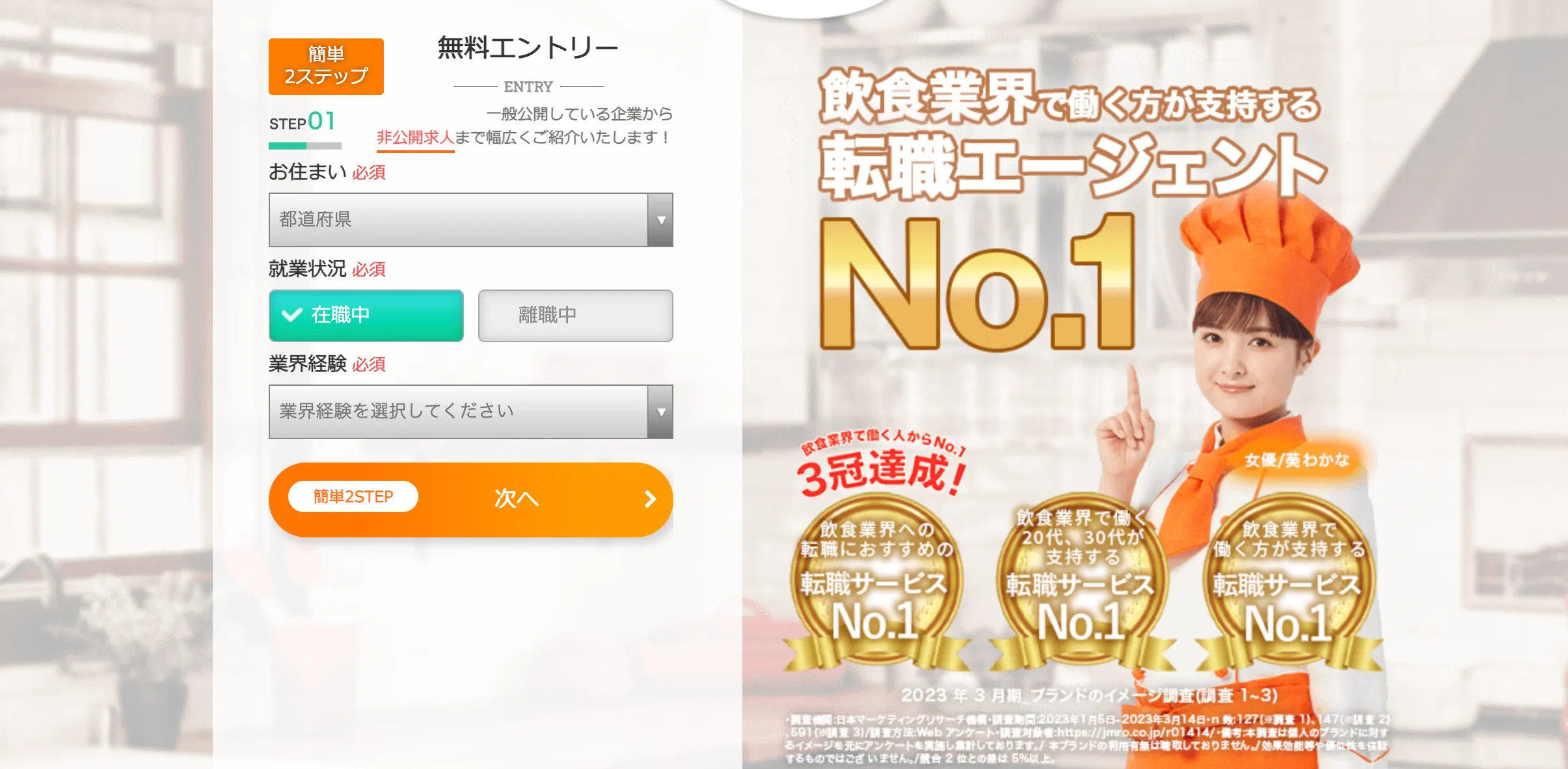 おすすめ度 飲食転職者から高評価(3冠達成)