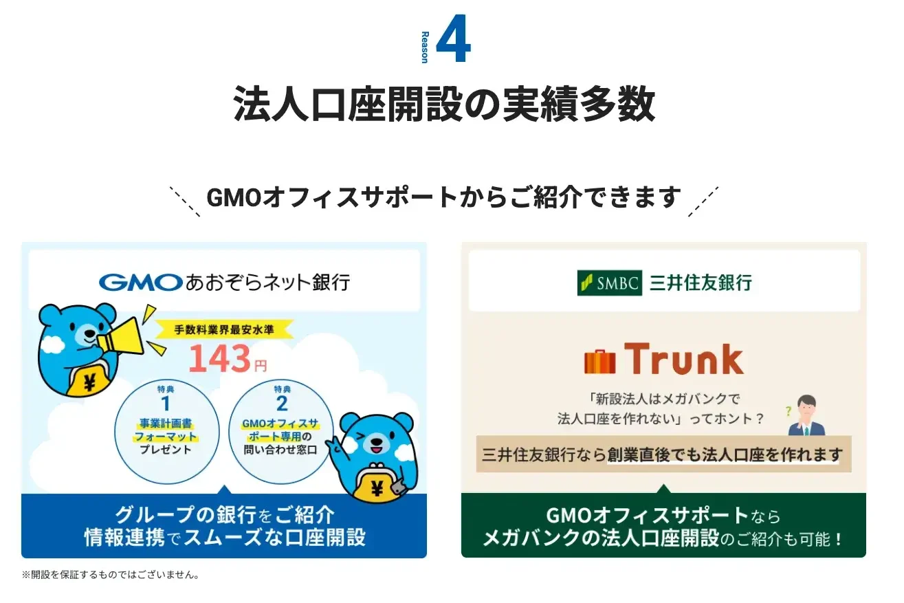 GMOオフィスサポートでは、法人口座の開設実績が豊富です。