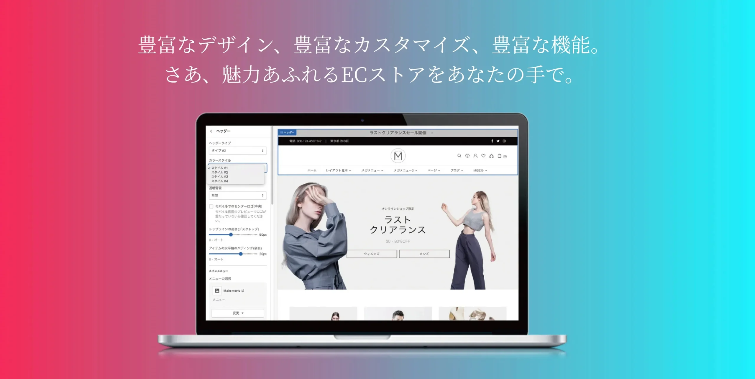 実際に、アパレル・ジュエリー・食品など幅広い業種のECサイトで導入実績があり、デザイン性と機能性を両立したテーマとして注目されています。