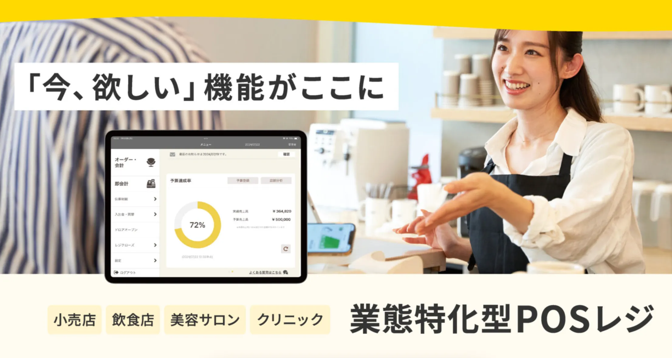 • 業種別に最適化された専用POSレジ(飲食・小売・美容・クリニック)